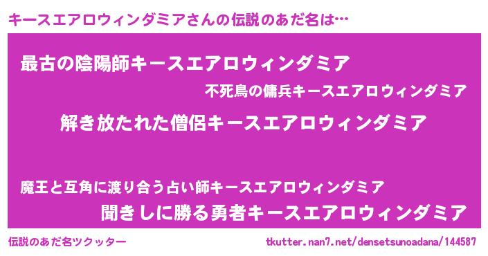 | 男性向けラノベタイトル風あだ名 | 『転生したらキースエアロウィンダミアだった件』 |