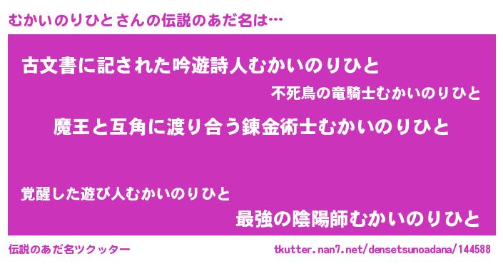 | 女子向けラノベタイトル風あだ名 | 『むかいのりひとアンティーク』 |
