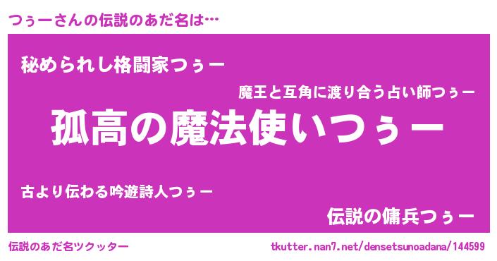 | ヒーロー風カッコイイあだ名 | 『魔戒騎士ツゥ』『ウルトラつぅーマン』 |