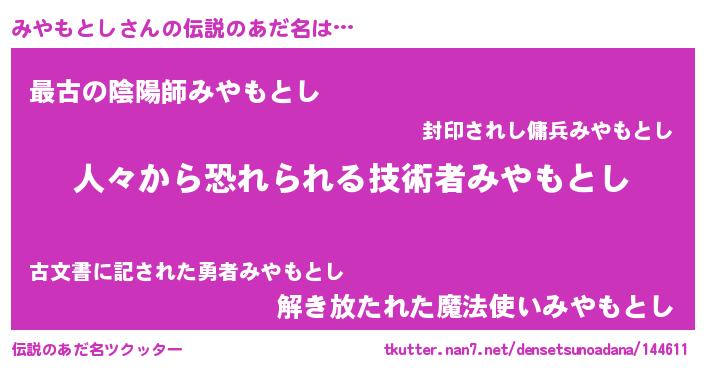 | ヒーロー風カッコイイあだ名 | 『正義の使者みやもとし』『仮面ミヤダー』 |
