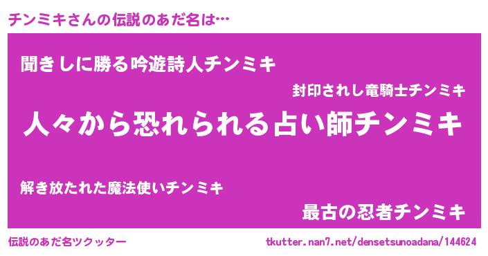 | ヒーロー風カッコイイあだ名 | 『友情の使者チンミキ』『仮面チンダー』 |