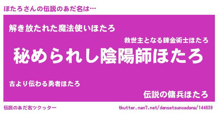 | 意味不明あだ名 | 『住所不定無職ほたろ(85歳)』 |