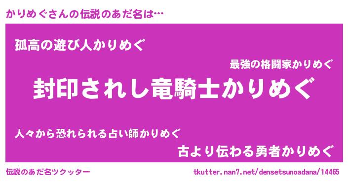 | 意味不明あだ名 | 『ペロリンかりめぐ』『自称かりめぐ』 |
