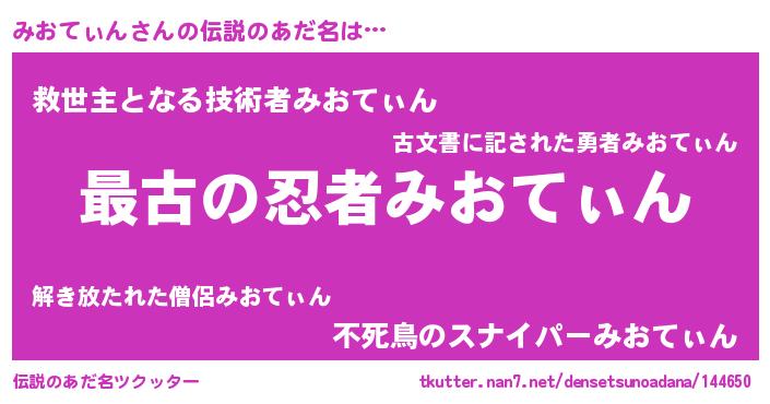 | ファンタジー風あだ名 | 『エターナルミオティンー』『ミオフェル』 |