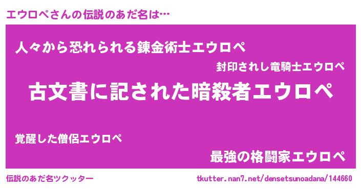 | ヒーロー風カッコイイあだ名 | 『ネオエウロペ』『友情の使者エウロペ』 |