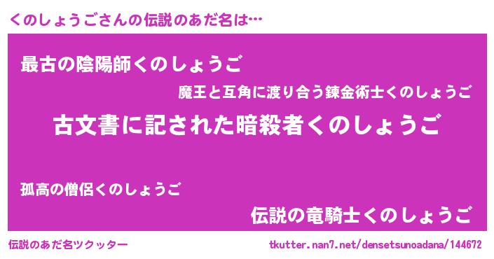 | ヒーロー風カッコイイあだ名 | 『ネオクノショウゴ』『仮面クノダー』 |