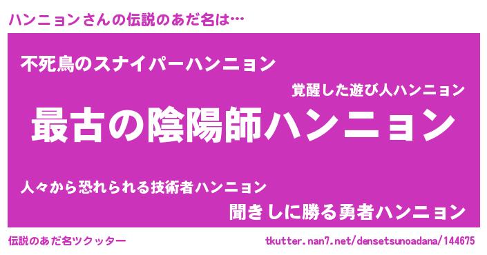 | 男性向けラノベタイトル風あだ名 | 『転生したらハンニョンだった件』 |