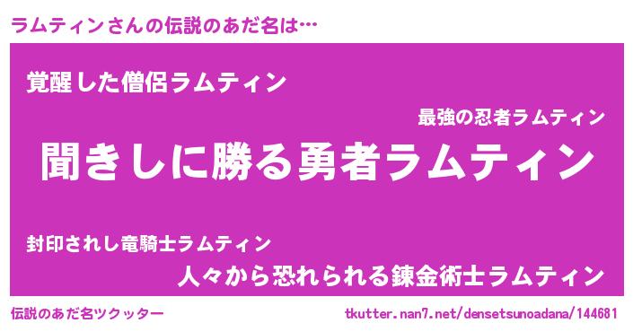 | 女子向けラノベタイトル風あだ名 | 『ラムティンなんてお断りですっ。』 |