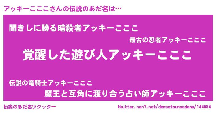 | 意味不明あだ名 | 『とにかく怪しいアッキーこここ』 |