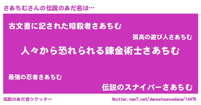 | ヒーロー風カッコイイあだ名 | 『友情の使者さあちむ』『ネオサアチム』 |