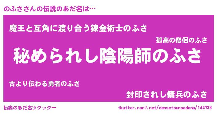 | 女子向けラノベタイトル風あだ名 | 『のふさなんてお断りですっ。』 |