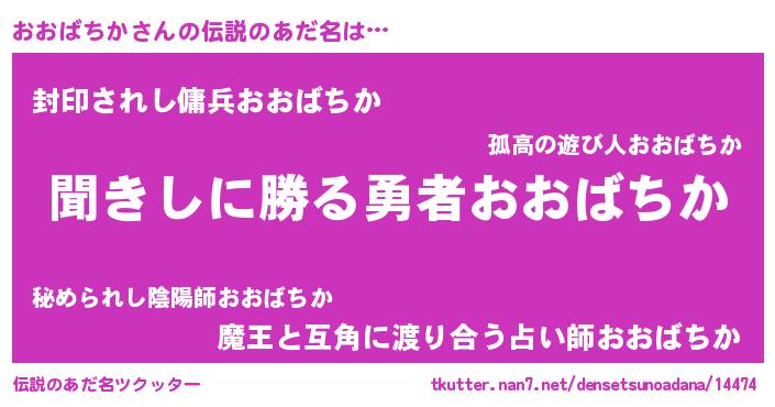 | 意味不明あだ名 | 『住所不定無職おおばちか(85歳)』 |