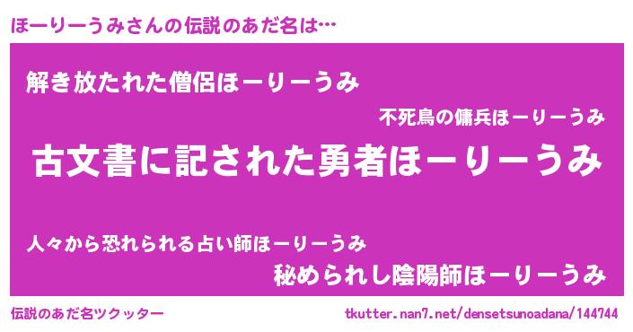 | 胡散臭い通販商品みたいなあだ名 | 『あなたにだけ特別に提供する世界で10本だけ現存している希少なブランデー…その名も「ほーりーうみ」』 |