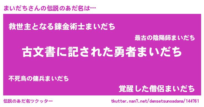 | ヒーロー風カッコイイあだ名 | 『ネオマイダチ』『正義の使者まいだち』 |
