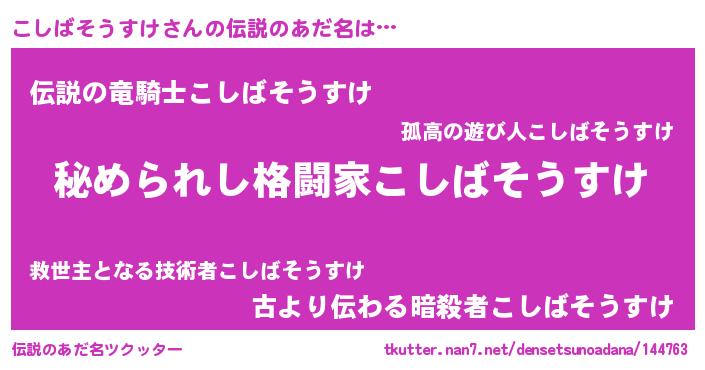 | 女子向けラノベタイトル風あだ名 | 『こしばそうすけが死なない童話 林檎のこしばそうすけの診療簿』 |