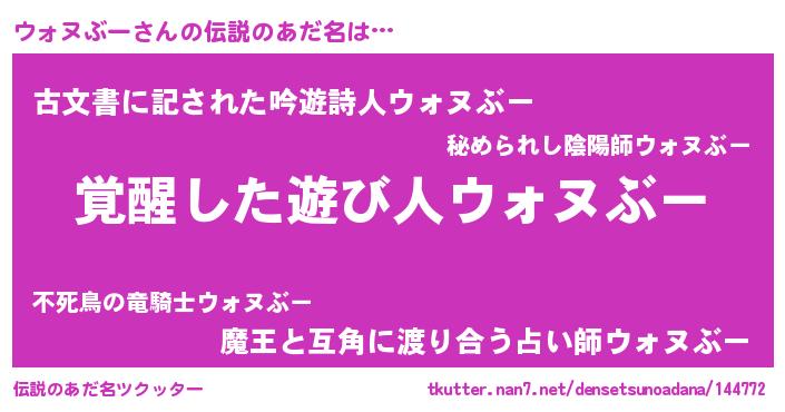 | 女子向けラノベタイトル風あだ名 | 『ウォヌぶー様がみてる』 |