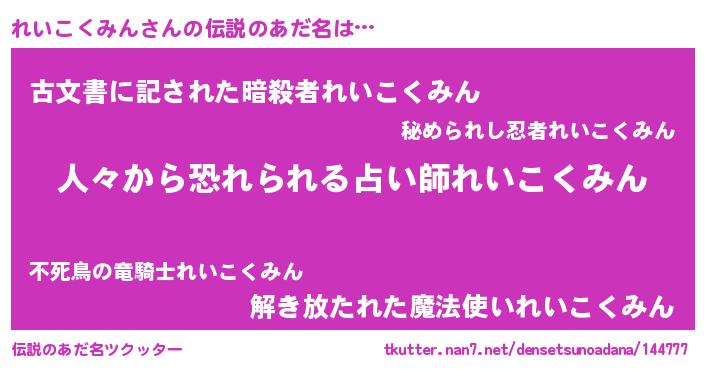 | ヒーロー風カッコイイあだ名 | 『正義の使者れいこくみん』 |