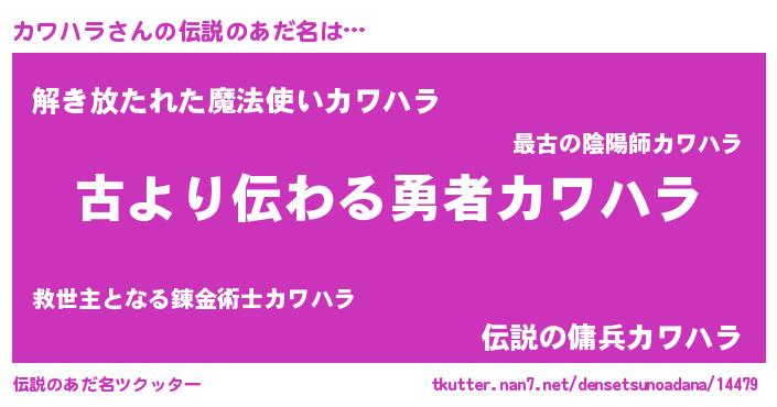 | 意味不明あだ名 | 『永久保存カワハラ』『自称カワハラ』 |