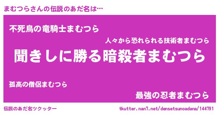 | 男性向けラノベタイトル風あだ名 | 『まむつらという概念が存在しない退屈な世界 』 |