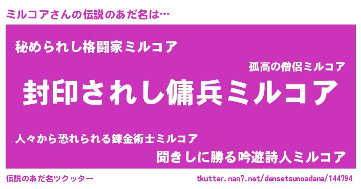 | 胡散臭い通販商品みたいなあだ名 | 『億万長者になれる水晶球…その名も「ミルコア」』 |