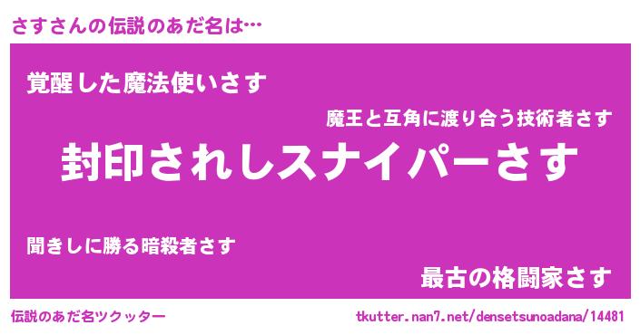 | ヒーロー風カッコイイあだ名 | 『最強戦士サス』『スーパーサス』 |