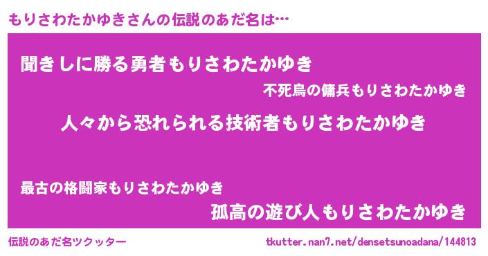 | ヘコむあだ名 | 『もりさわたかゆき(笑)』『もりぷりん』 |