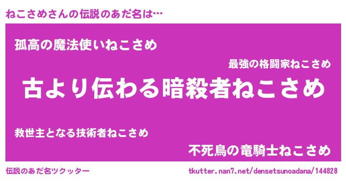 | 胡散臭い通販商品みたいなあだ名 | 『来世でも幸せになれる健康食品…その名も「ねこさめ」』 |