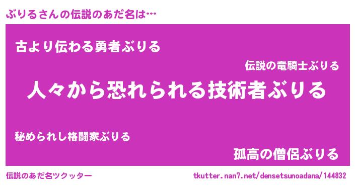 | ヘコむあだ名 | 『ぶりる(小並感)』『ぶりお』 |