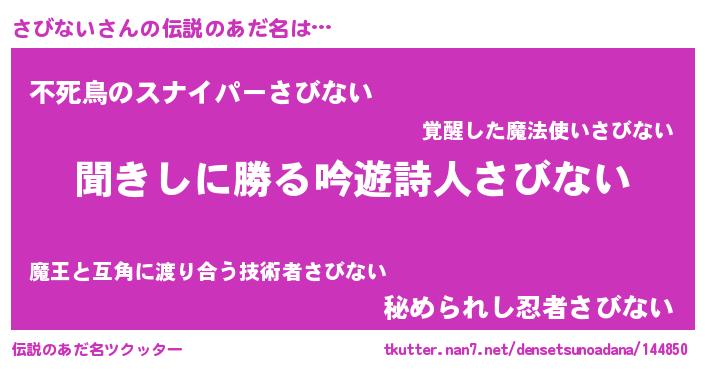 ヘコむあだ名 | 『さびない(小並感)』『さびにゅー』 |