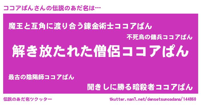 | 意味不明あだ名 | 『自称ココアぱん』 |