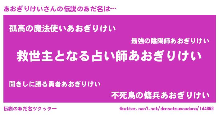 | 意味不明あだ名 | 『住所不定無職あおぎりけい(41歳)』 |