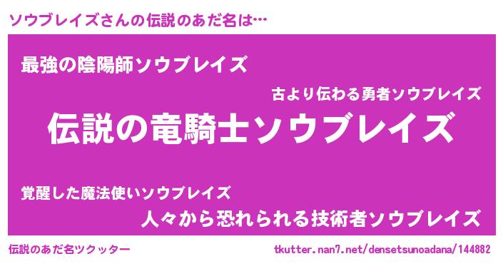 | ヒーロー風カッコイイあだ名 | 『スーパーソウブレイズ』『仮面ソウダー』 |