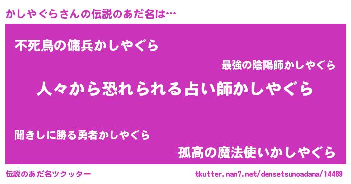 | ヒーロー風カッコイイあだ名 | 『超時空戦士カシヤグラ』『炎刃騎士カシ』 |