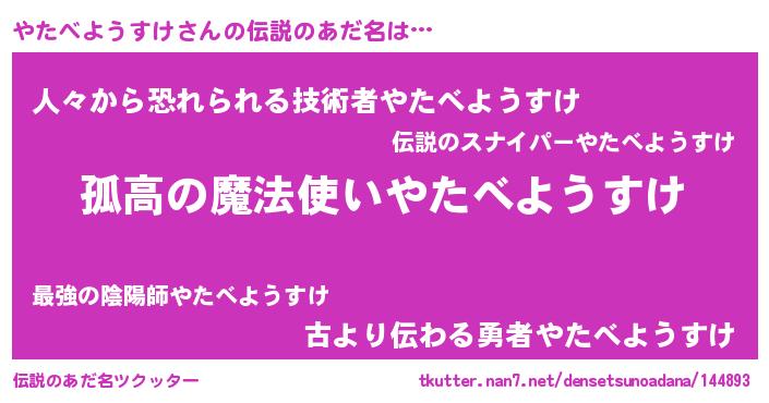 | ヒーロー風カッコイイあだ名 | 『暗黒騎士ヤタ』『ネオヤタベヨウスケ』 |