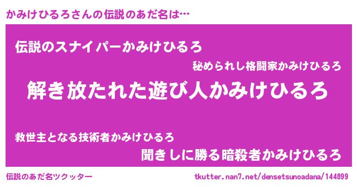 | 男性向けラノベタイトル風あだ名 | 『転生したらかみけひるろだった件』 |