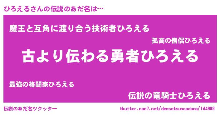 | 意味不明あだ名 | 『自称ひろえる』『永久保存ひろえる』 |