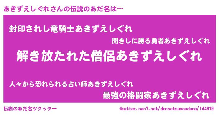 | 意味不明あだ名 | 『住所不定無職あきずえしぐれ(50歳)』 |