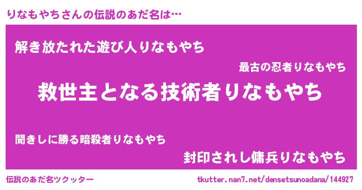 | 肩書あだ名 | 『りなもやち少尉』『りなもやち教授』 |
