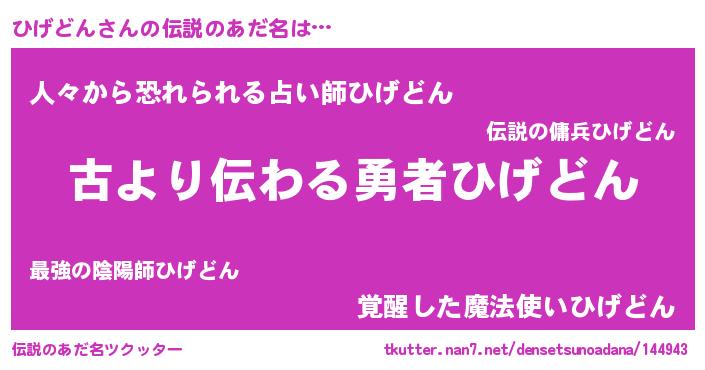 | ヒーロー風カッコイイあだ名 | 『ネオヒゲドン』『正義の使者ひげどん』 |