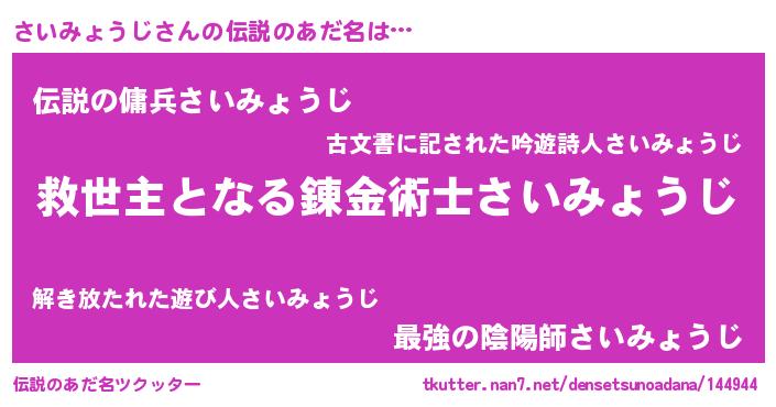| 意味不明あだ名 | 『自称さいみょうじ』 |
