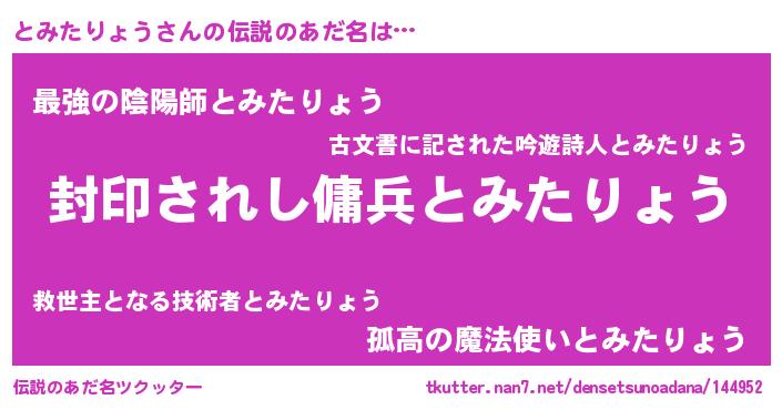 女子向けラノベタイトル風あだ名 | 『とみたりょうストレイドッグス』 |