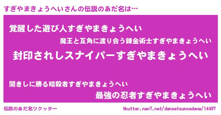 | 胡散臭い通販商品みたいなあだ名 | 『億万長者になれる霊験あらたかなお札…その名も「すぎやまきょうへい」』 |