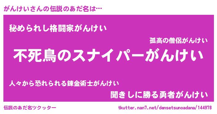 | 胡散臭い通販商品みたいなあだ名 | 『モテモテ間違いなし霊験あらたかなお札…その名も「がんけい」』 |