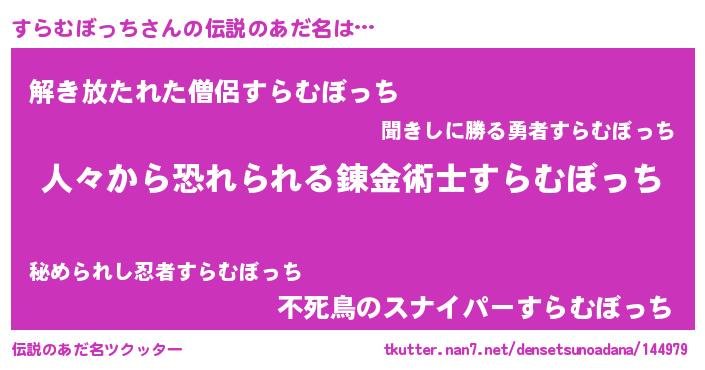 | 欧米人風あだ名 | 『アンジェラ・すらむぼっち』 |