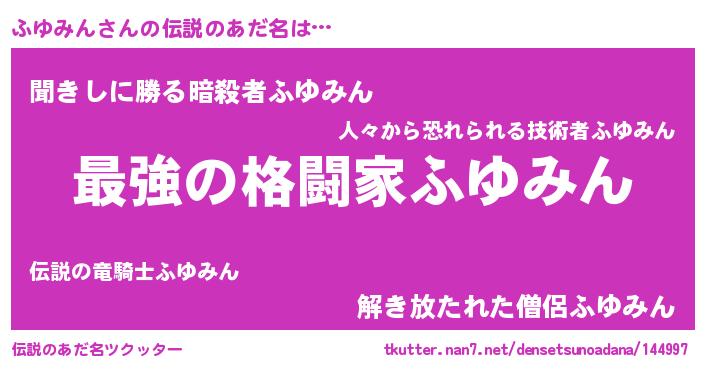 | ファンタジー風あだ名 | 『エターナルフユミンー』『ゼフユトゥ』 |