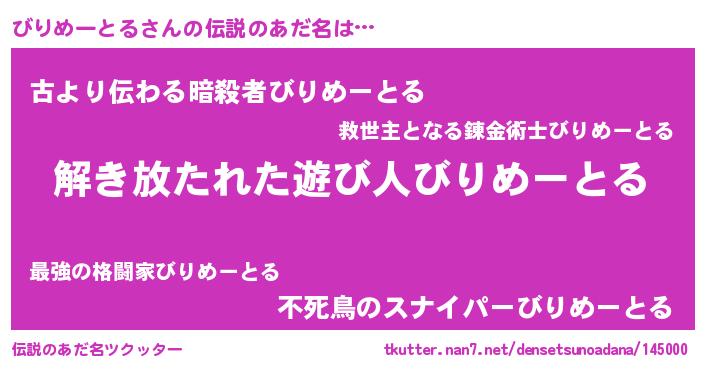 | 意味不明あだ名 | 『とにかく怪しいびりめーとる』 |