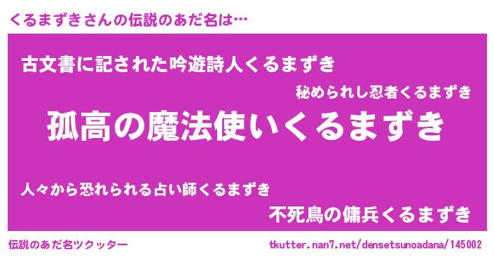 | ヘコむあだ名 | 『くる太郎』『くるまずき(小並感)』 |