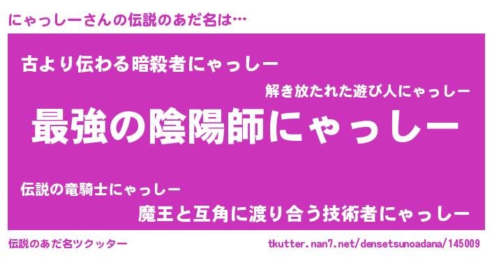 | ファンタジー風あだ名 | 『エターナルニャッシーー』『ゼニャトゥ』 |