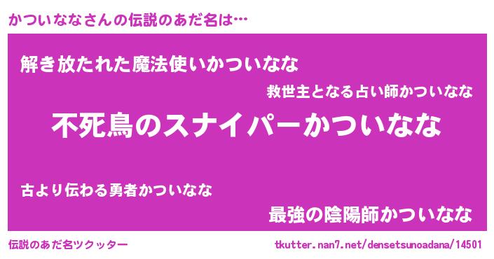 | ヒーロー風カッコイイあだ名 | 『スーパーカツイナナ』『幻影騎士カツ』 |