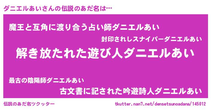 | 意味不明あだ名 | 『とにかく怪しいダニエルあい』 |